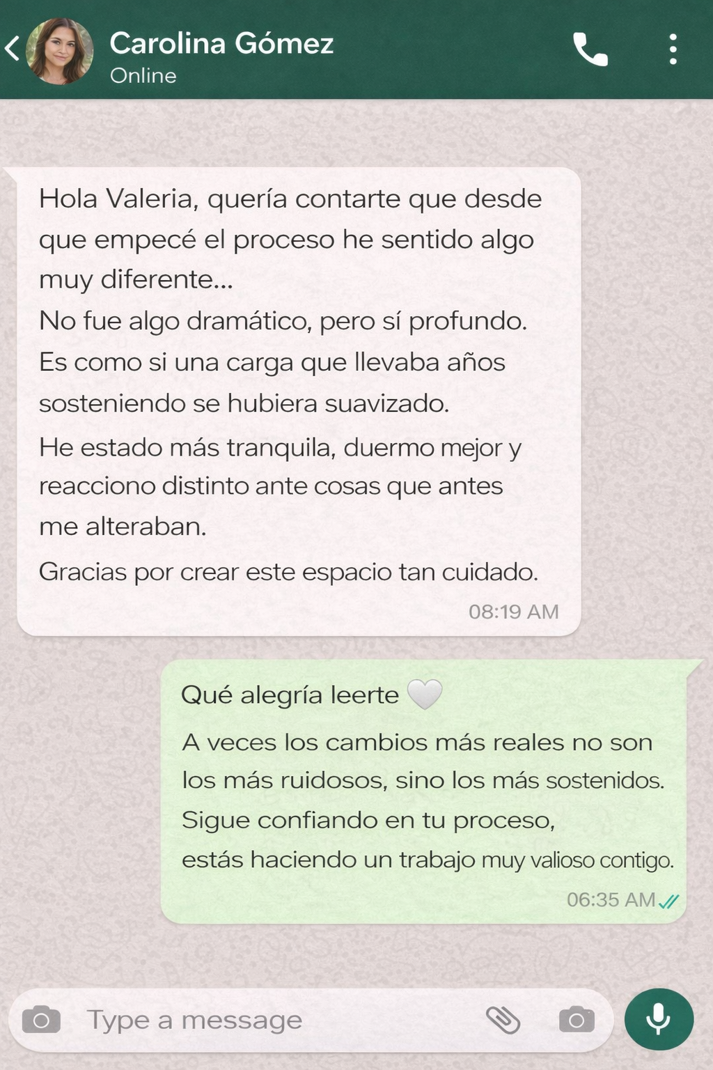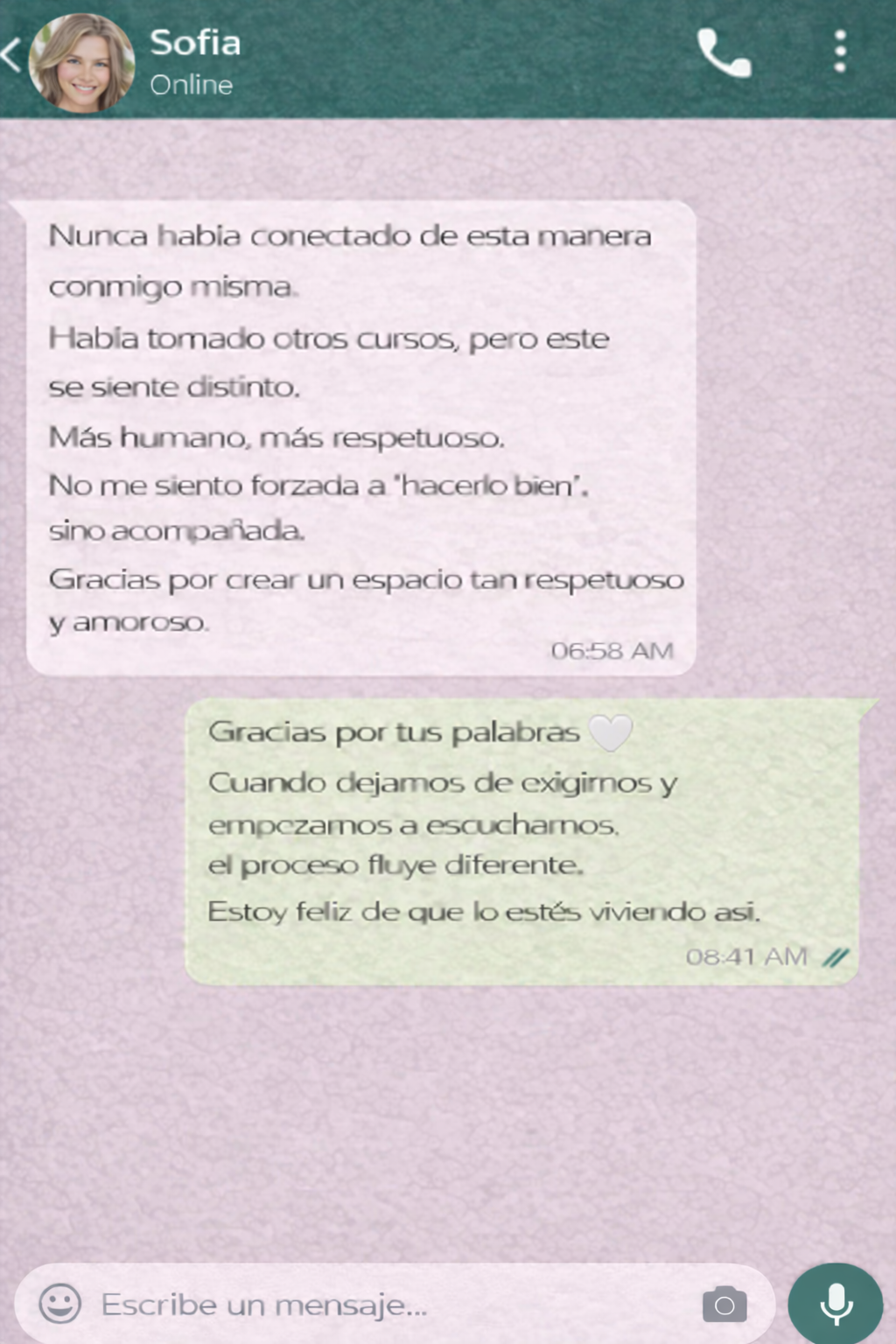 que te acompaña a tu propio ritmo, en un espacio seguro, amoroso y consciente.